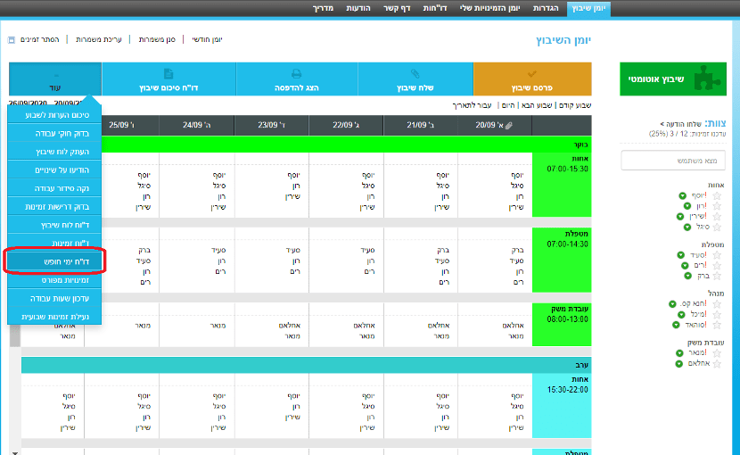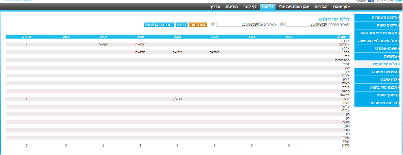 וכך ייראה הדוח מערכת המרכז את ימי החופש: