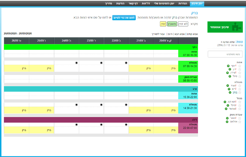 6. בממשק המנהל ביומן השיבוץ המערכת מסמנת באייקון של ׳שמש׳ את ימי החופש של העובד.