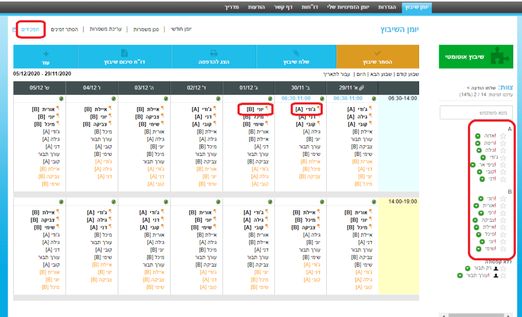4. שיבוץ אוטומטי – מנוע השיבוץ משבץ את העובדים למשמרות עפ"י החלוקה לקפסולות וכך בכל משמרת או קבוצת משמרות משובצים עובדים מאותה קפסולה בלבד.