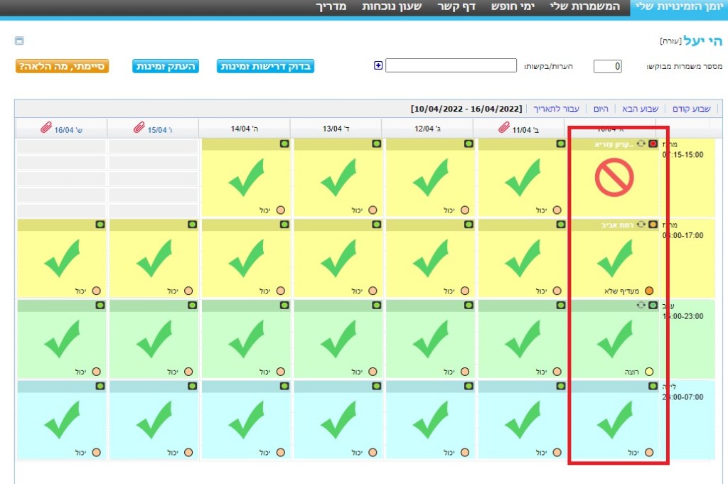 כמובן, במידה ועובד סימן שהוא אינו זמין, השם שלו לא יופיע על גבי המשמרת.