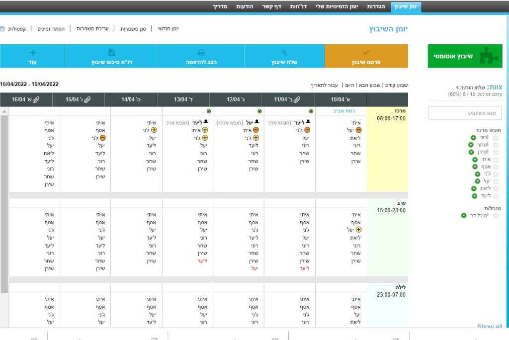 סימון (+) לצד שם העובד מראה שהוא 'רוצה' לעבוד במשמרת,