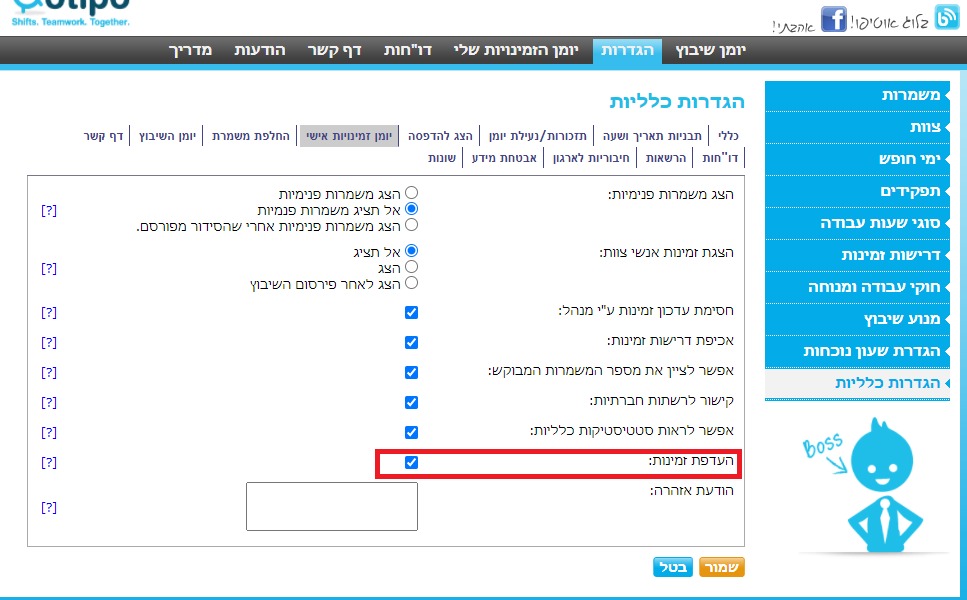 בנוסף לסימון פנוי/לא פנוי, העובדים יכולים כעת לעדכן במשמרות שסימנו כפנויות מהי ההעדפה- 'רוצה', 'יכול' ו'מעדיף שלא'.