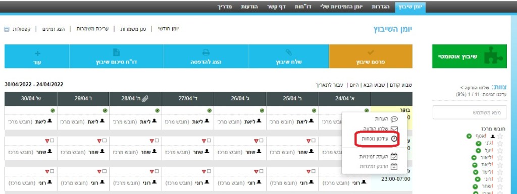 השעות ניתנות לעריכה ע"י העובדים וכן ע"י מנהל הסידור