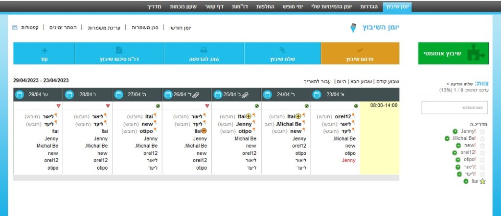 כך מסך העדפת הזמינות נראה לפני הפעלת השיבוץ האוטומטי: